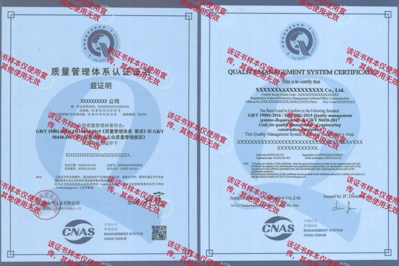 版權(quán)所有 All Rights Reserved 江蘇九州認證有限公司 蘇ICP備05023393號 蘇公網(wǎng)安備32010602010942號 地址:南京市云南路31-1號蘇建大廈 郵編:210008 電話:025-83329736;83315410;83235215 E-mail:jsjzrz@jzrz.cn